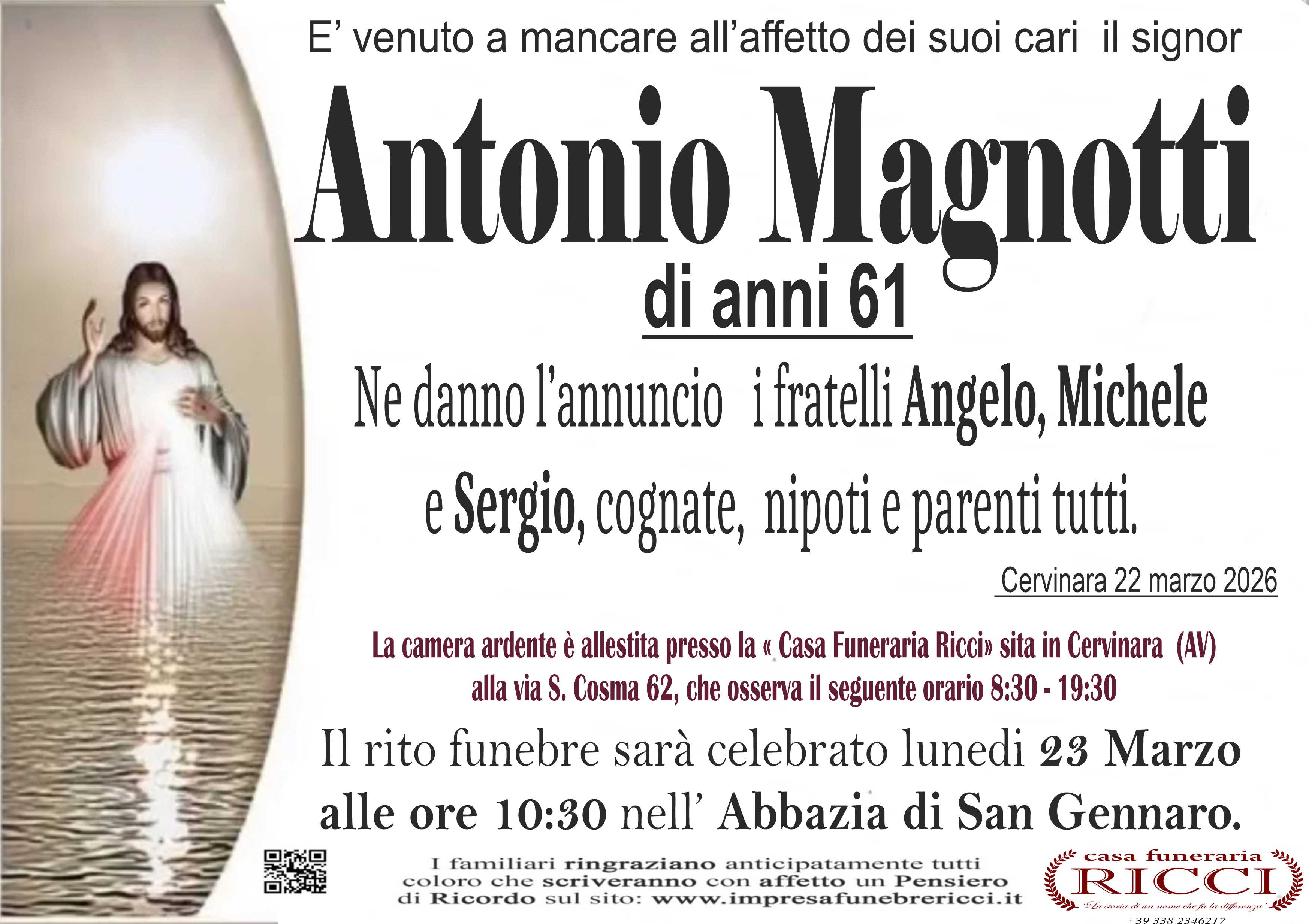 La camera ardente è allestita presso la Casa Funeraria Ricci