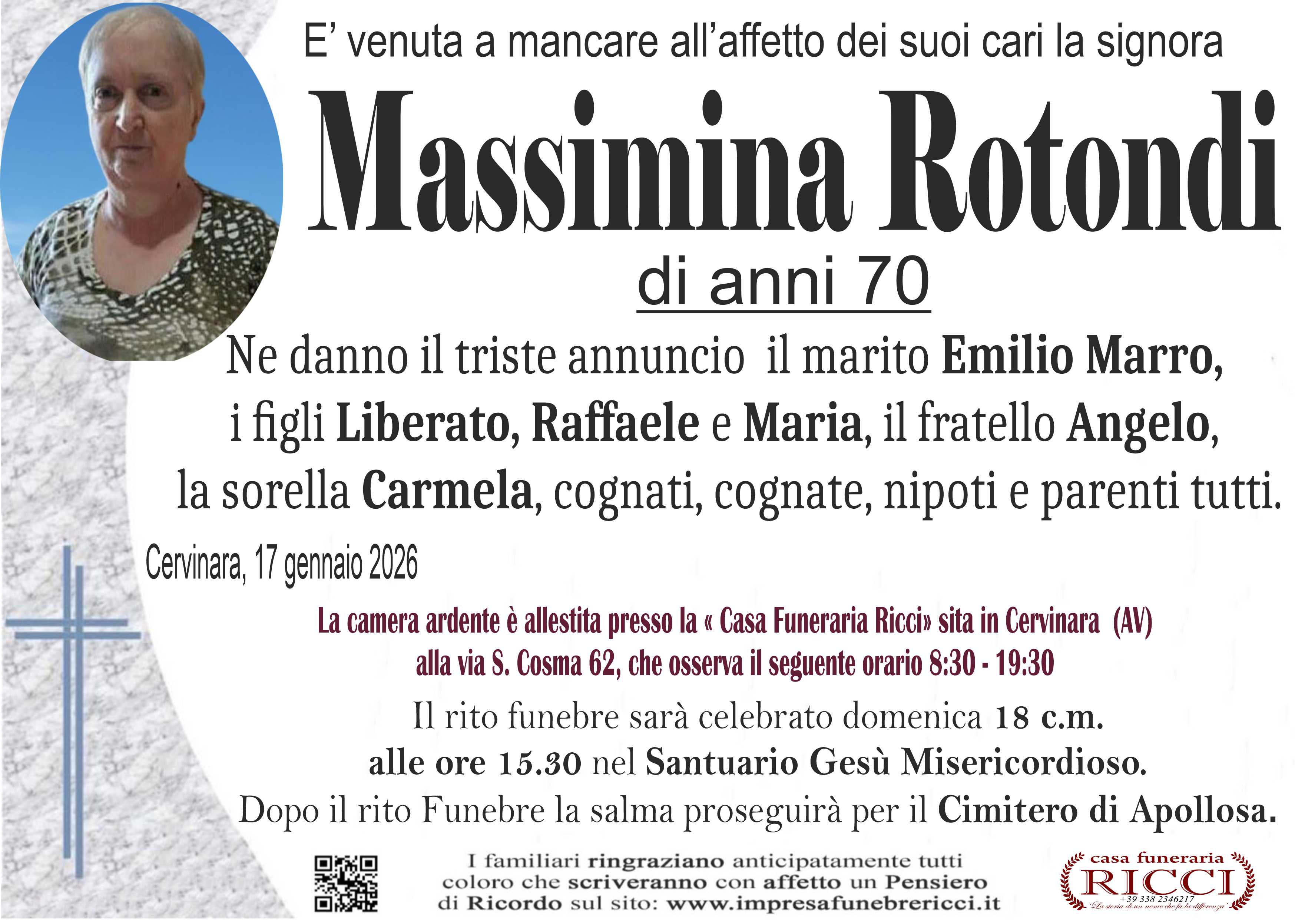 La camera ardente è allestita presso la Casa Funeraria Ricci